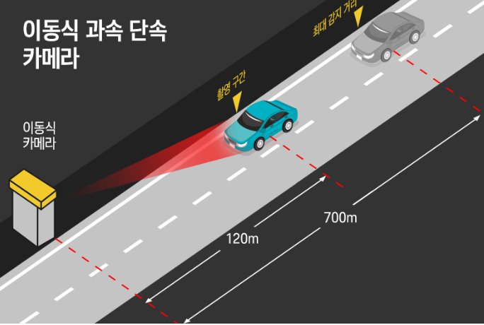 이동식 과속 단속 구간은 일반적으로 사고다발구간이나 어린 이보호구역 등 운전자가 특히 조심해야 할 곳이기에 이동식 과속 단속 구간이라면 꼭 제한 속도를 준수해 주세요!