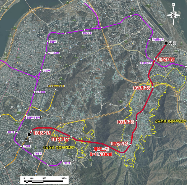 - **토지이용**: 계획노선은 총 연장 11.700 km이며, 총 6개의 정거장이 포함됩니다. 환경친화적 토지 이용 방안을 고려하여 토지보상 및 손실보상을 충분히 협의할 계획입니다. 특히, 생태적 가치가 높은 지역은 개발을 최소화하고 대체 서식지를 제공하는 등의 보전 대책을 마련합니다.