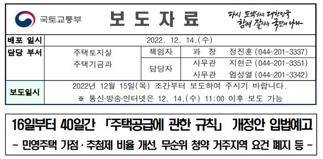 보도 자료는 국토교통부 홈페이지 접속하셔서 뉴스 · 소식 >> 보도자료에서 다운받으실 수 있습니다. 내용이 길지 않고 2page 로 구성된 보도자료 입니다. 자주 들어가서 보는 습관을 들이시면 국토교통부 최신 정보를 접할수 있습니다.