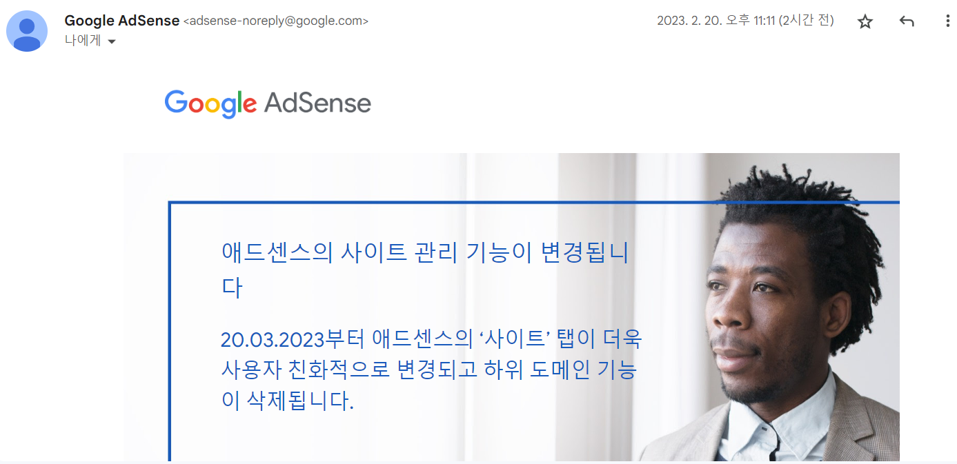 구글 애드센스가 보낸 메일 내용에 이렇게 적혀 있네요. 사이트 탭이 기존과 다르게 새롭게 디자인 될 것을 공지하는 그런 메일 인 줄로만 알았습니다. 계속 해서 메일을 읽다보니 새로운 내용이 있었습니다.