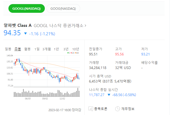 ChatGPT 가 나온 후 구글 주식이 떨어졌다고 합니다.